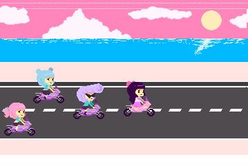 It was a game where you played as a bosozoku gal, Suki, trying to get back to her home turf before sundown, while being harassed by the rival gang along the way. It wasn’t called Ribbon Night Riders at the time ‘cause we’re bad with names. We agreed on the name months later, when I made a cart for it for the Taiyou project.